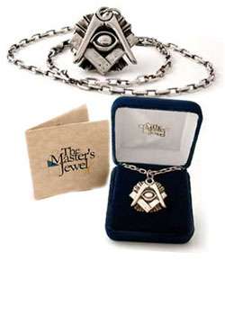 The Original Mason's Jewel is 1 1/8" wide and tall, and each set comes with a 20" 3.5mm Diamond-Cut, "antiqued" Sterling Silver curb chain, packaged in a genuine blue velvet gift box.