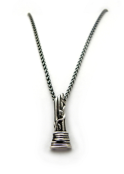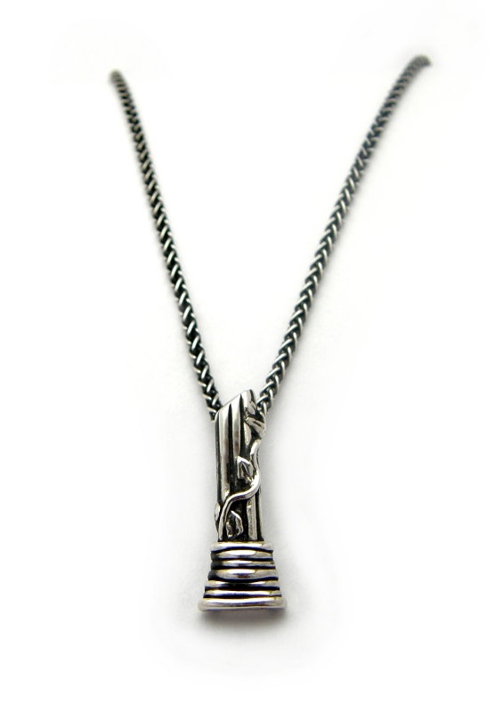 Here is the Broken Column Pendant, with an 18" chain. The ring to hang the pendant is affixed on the back, to not interfere with the column itself.
